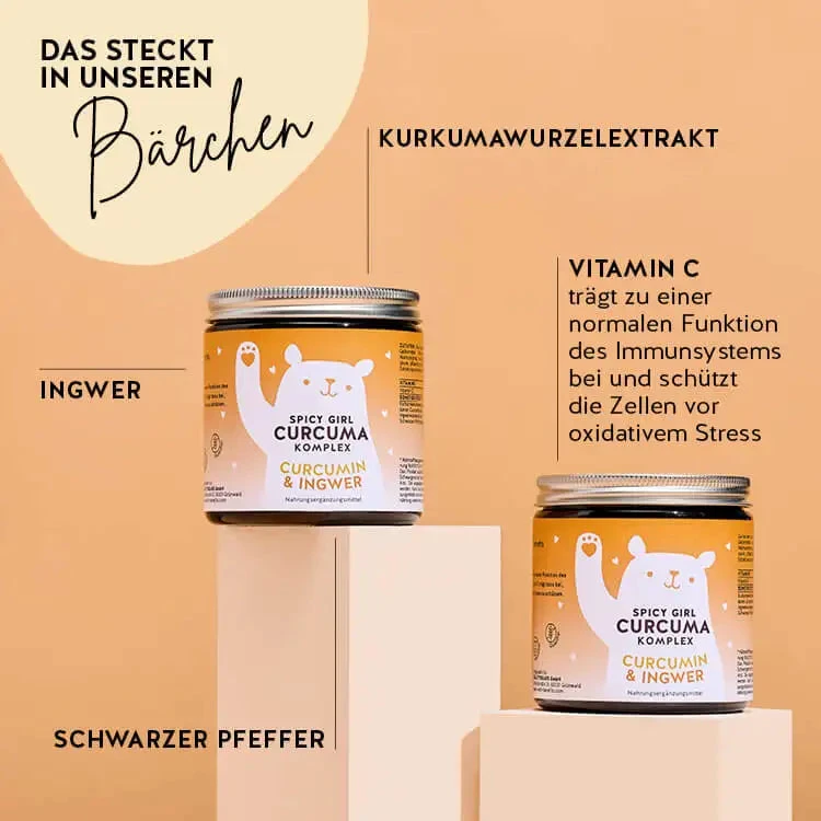 Die nach Mango schmeckenden Gummibärchen liefern dem Körper die zahlreichen positiven Eigenschaften von Kurkuma und Ingwer in Kombination mit schwarzem Pfeffer. Kurkuma gilt als ayurvedisches Superfood, dort zählt es zu den sogenannten heißen Gewürzen.